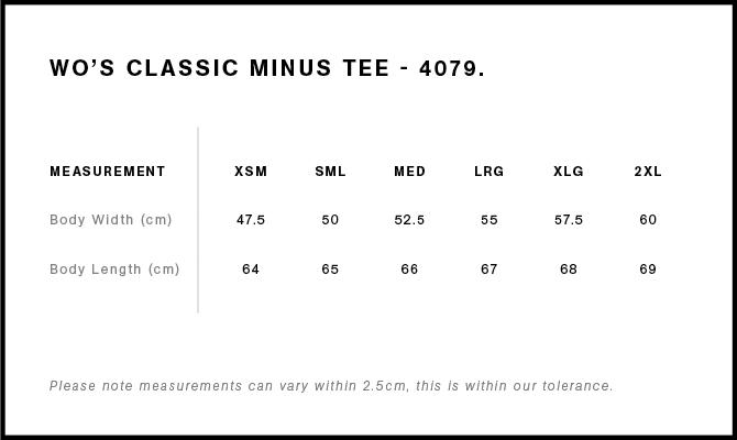 Shorter body roughly 5cm shorter than our standard Classic Tee. Neck ribbing, side seamed, shoulder to shoulder tape, double needle hems, preshrunk to minimise shrinkage
